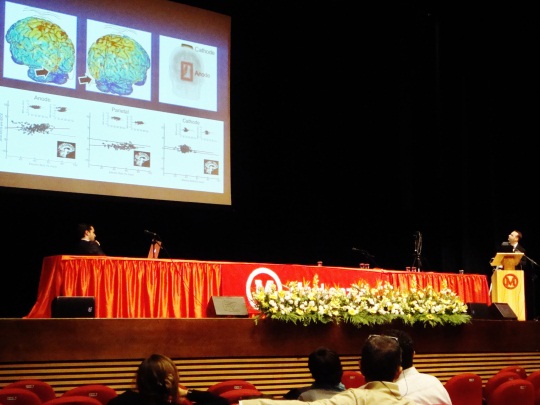 O III Simpósio Internacional em Neuromodulação aconteceu nos dias 17, 18 e 19 de outubro de 2011 no Auditório Ruy Barbosa, na Universidade Presbiteriana Mackenzie em São Paulo/SP. O evento contou com a ilustre presença de profissionais de grandes Universidades internacionais como Harvard, Cornell (EUA) Gottingen (Alemanha), Montreal (Canadá), Milão e Brescia (Itália) e nacionais como Mackenzie, USP, Unesp e UFRJ. No aconchegante e confortável Auditório Ruy Barbosa, os palestrantes renomados nas áreas da Neurociências e Neuromodulação, discutiram novas fronteiras na modulação cognitiva, abordando as considerações éticas, implementação de diretrizes no uso para prática clínica e em pesquisa e os avanços nas áreas da neurologia, reabilitação, psicologia e psiquiatria. Os participantes aproveitaram os temas, participaram dos debates e apresentaram excelentes trabalhos na área. O evento contou com a participação de profissionais de vários estados brasileiros contribuindo com a troca de idéias enriquecedora entre profissionais e estudantes de diversas áreas. O III Simpósio Internacional em Neuromodulação foi excelente e de alto teor científico na área, sendo muito bem avaliado pelos presentes. Para contribuir ainda mais para o aprendizado dessa área, durante o evento foi lançado o livro organizado por Felipe Fregni (Harvard), Paulo Boggio (Mackenzie) e André Brunoni (USP) intitulado: “Neuromodulação Terapêutica: Princípios e Avanços da Estimulação Cerebral Não Invasiva na Neurologia, Reabilitação, Psiquiatria e Neuropsicologia” da editora Sarvier. O Instituto Scala agradece a participação dos profissionais, pesquisadores e estudantes de diversas áreas que contribuíram na oportunidade de objetivar nossa missão institucional a fim de proporcionar aos profissionais melhores atuações no desenvolvimento e crescimento da Saúde Pública no Brasil.